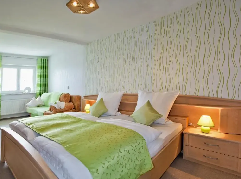 Panoramaferienwohnung Bergwiese è un'ampia residenza ubicata in Hauptstraße 52, 98666 Masserberg, Germania. Offre un appartamento con due camere da letto e un soggiorno dotato di cucina completa, zona pranzo e divano letto. Gli ospiti godono di un giardino privato e un'area esterna per rilassarsi, mentre le strutture per barbecue e deposito sci rendono ideale questa destinazione per attività outdoor come lo sci, escursioni o cicloturismo. L'appartamento presenta anche accesso a internet wireless, macchina per caffè e televisione. Disponibile refrigeratore, microonde, lavastoviglie e pavimento in legno. Situata a circa 39 miglia dall'aeroporto di Erfurt-Weimar, la proprietà si trova vicino al centro di Suhl (22 miglia) e Skirena Silberances (19 miglia), oltre che alle attrazioni regionali come Rennsteiggarten Oberhof e Lütschetalsperre Dam.